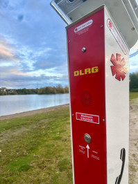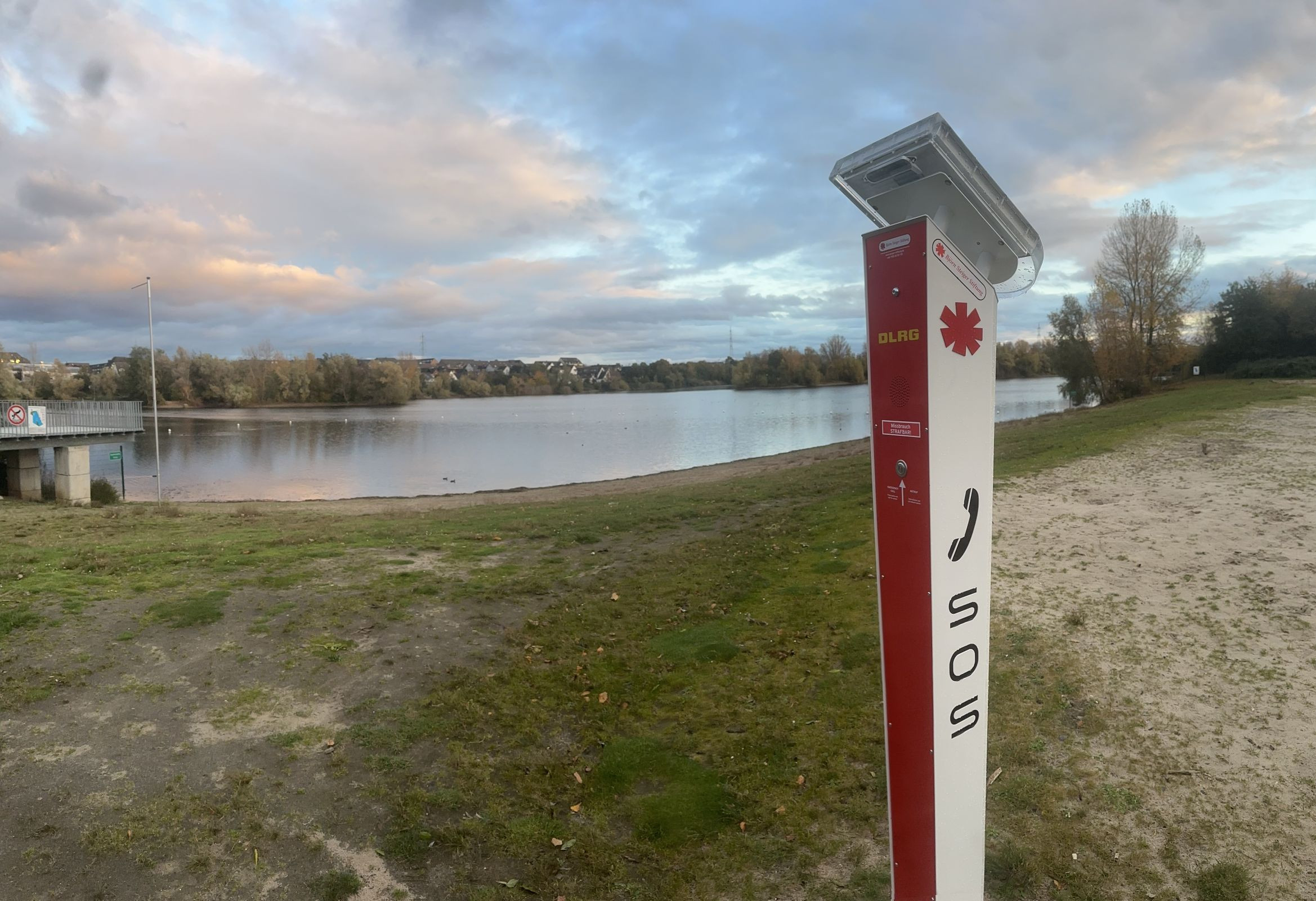 Da die Rettungsschwimmer nicht rund um die Uhr am See sein können, ist es wichtig, dass auch zu den unbewachten Zeiten schnelle und vor allem rechtzeitige Hilfe kommen kann. Aus diesem Grund haben wir im November 2023 eine Notrufsäule durch die Björn-Steiger-Stiftung direkt am Badestrand aufstellen lassen.